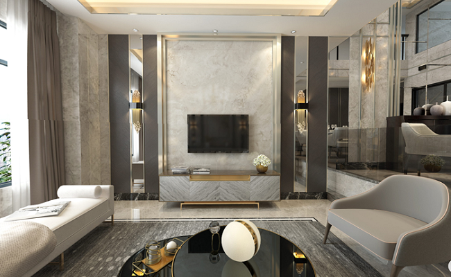 本案為該項目旗艦戶型,面對的客戶也是高品質(zhì)的精英人群。他們隨著時間與年齡的增長,財富與閱歷也在不斷地提高。 人們開始追求高品質(zhì)高格調(diào)的生活。這種生活方式不僅僅是因為財富的增長,與閱歷的增長,沉淀。使得這一代的精英開始追求典雅奢華的生活方式。在客廳的設(shè)計當中,我們充分利用了戶型的特點,在沙發(fā)的布置上我們做成了兩組沙發(fā)組團對坐的形式,這是典型的豪宅才會出現(xiàn)的設(shè)計手法,不僅大氣,也能讓客戶坐在這里,欣賞窗邊的景色。