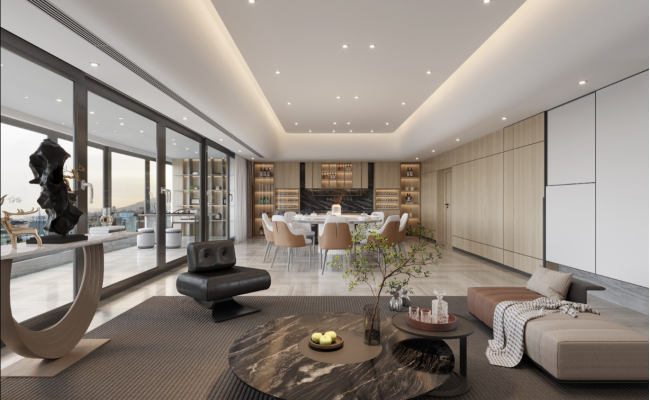 本設(shè)計以奶油風(fēng)為基底,融入藝術(shù)輕奢的設(shè)計巧思,打造客餐廚一體化的溫馨且富有個性的居住空間,在柔和的氛圍中注入藝術(shù)張力,兼顧生活舒適度與視覺美感。