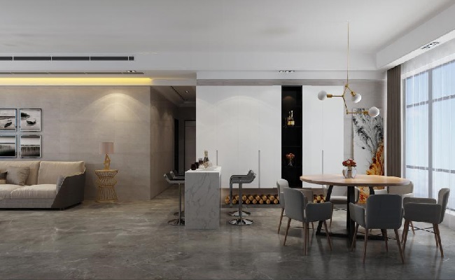 本案是以中式為主題,所謂現代新中式,即運用不流于傳統元素之俗的設計手法,保留傳統中式風格的含蓄典雅,又融入新時代新元素,彰顯摩登品質感客廳背景墻上一幅筆墨酣暢、意境悠然的墨寫山水畫,奠定了整體空間典雅質樸的格調;潑墨山水地毯與之呼應,形成對話;空間色彩上,汲取墨色山水中的“灰度”色調為空間的主色調,穩重成熟;空間布局采取對稱的形式,陰陽協調,加之具有古典元素的飾品擺件的點綴,整個空間內中式韻味濃烈,散發出亦古亦今的層次之美餐廳部分,依然保持著“灰度”色調,滿溢時尚摩登氣息的現代風格餐桌餐椅,色調沉穩,造型優雅,不失大氣與品味;黑白山水畫與客廳相呼應,格調高雅,充滿了神秘的奇幻色彩,每天,在這樣優雅的環境下享用美食,一餐一飯都顯得格外幸福,而生活應當如此。