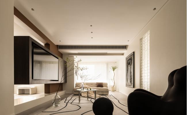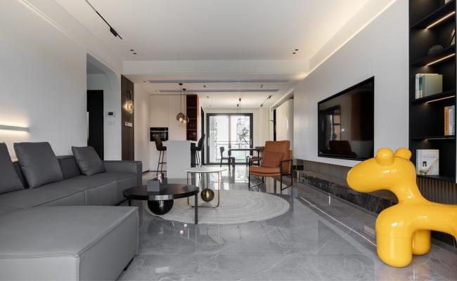 屋主夫婦2人就職于設計院,平時在家有辦公的需求。 以此為契機,設計師梳理了各區域的空間設計。 整體動線以客廳為主體向四周擴散,打通客廳與餐廳以及書房的壁壘。