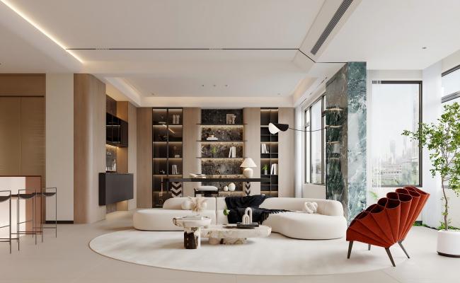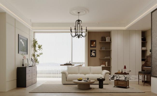 整體空間的布局考慮到了實用性與美感的完美結(jié)合。 客廳的中式弧頂設計有效地提升了空間的高度感。同時,通過其半吊頂?shù)那擅钐幚恚彩沟谜w空間變得更加寬敞明亮,中式弧頂讓客廳的上方空間顯得更為開闊,消除了可能存在的壓抑感。 半吊頂?shù)脑O計則充分利用了空間結(jié)構(gòu),它在不占用過多空間的情況下,合理地調(diào)整了視覺效果,讓整個客廳看上去比實際面積更顯寬敞。