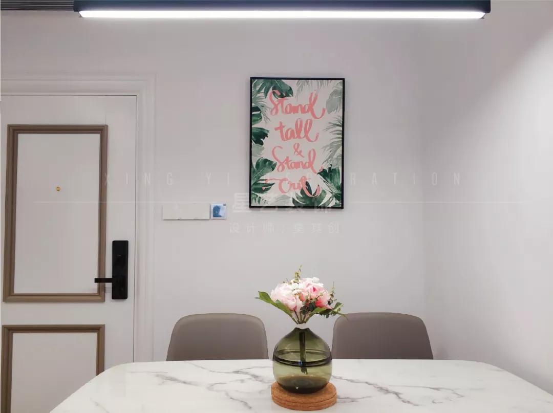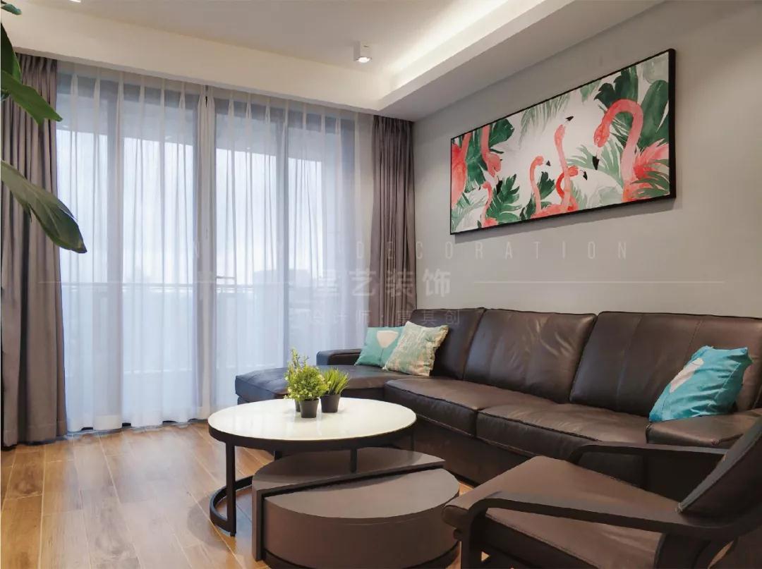 客廳沙發背景墻選擇帶有火烈鳥圖案的掛畫,呼應了擺放在客廳里那棵較大的植物,火烈鳥寓意自由熱烈、優雅活力,跳躍整個空間寧靜的氛圍。