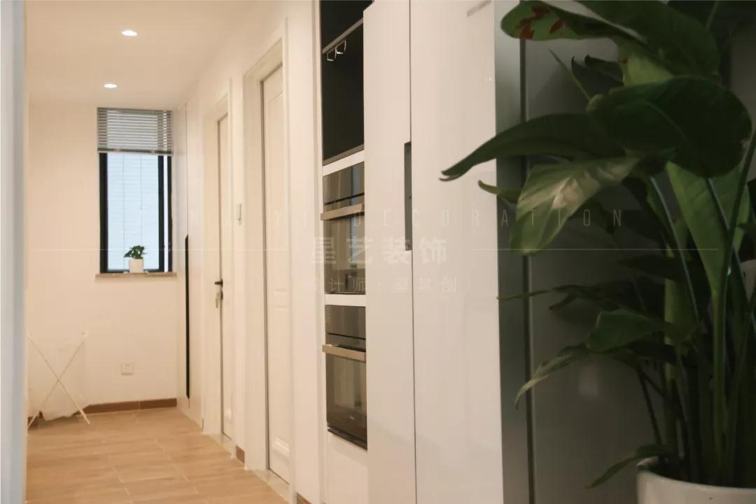 需要解決原廚房狹窄的問題,把占用一定空間的衛生間門移到原本過道的衣帽間的衛生間,把廚房空的操作臺擴大,而冰箱、烤箱和紅酒柜等設計在過道上,這樣廚房的空間也通透明亮起來,又解決了衛生間門口設計的問題。