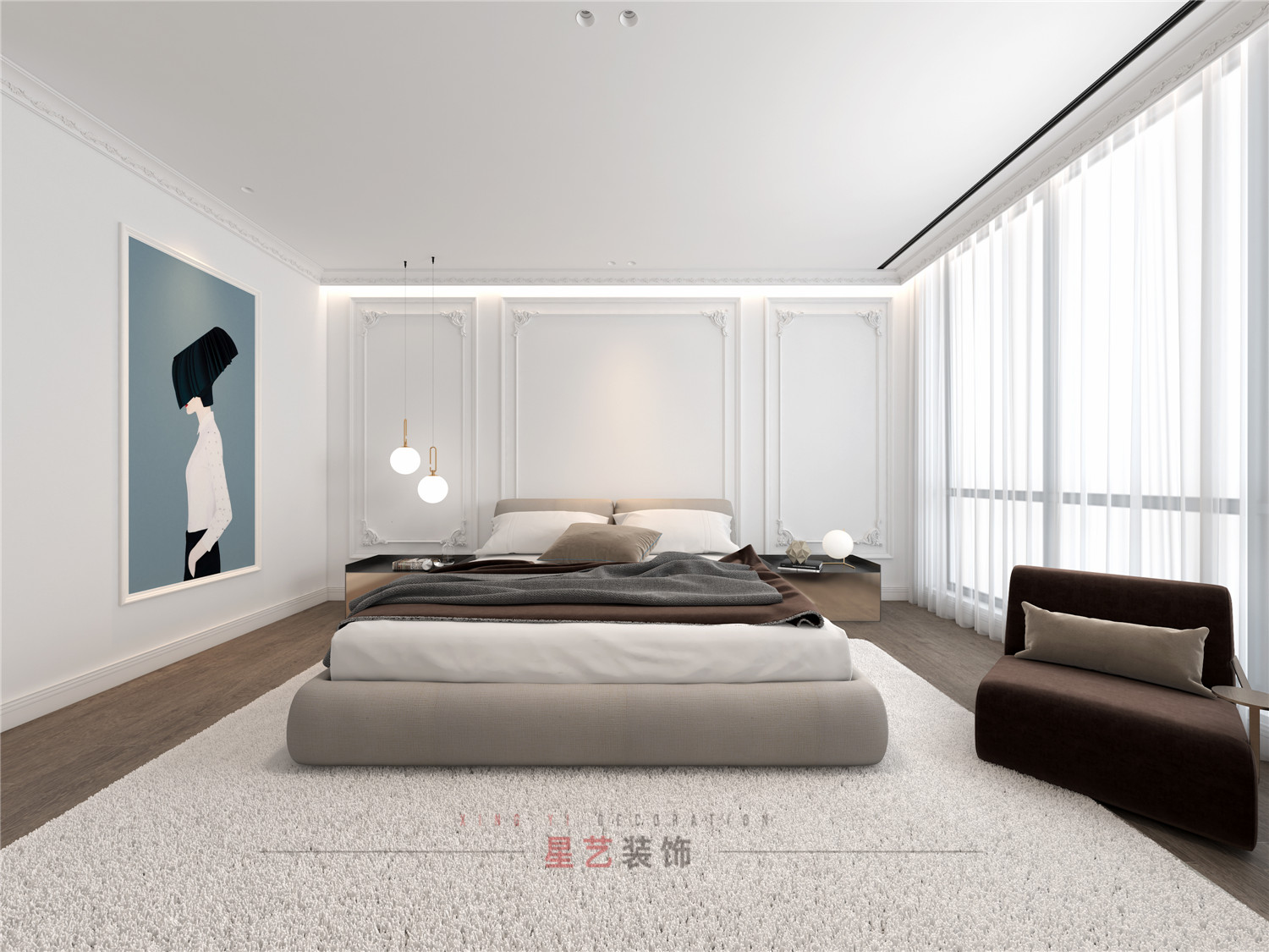 含蓄高級,結合一束獨特燈具,頓顯藝術性與美感;