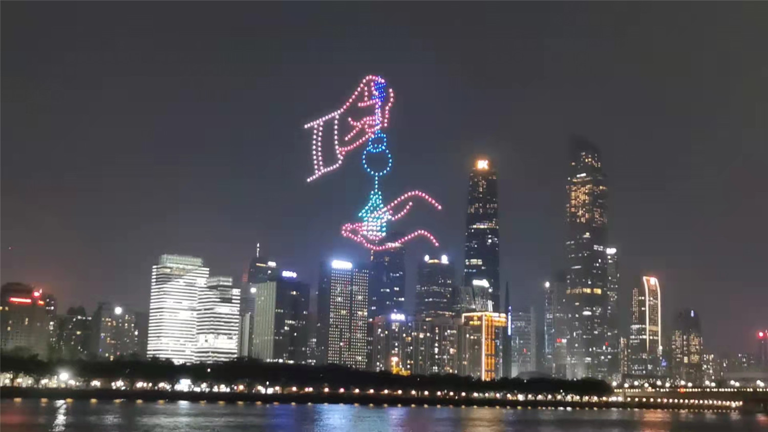 壯觀的無人機群,從廣州二沙島起飛,