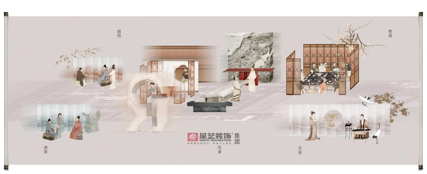 本案以巴蜀十二景為主題思想移步一景,空靈之美耐人尋味,在有象于無象之間,最稱奇妙。設計上講究的是氣韻,“氣韻,生動是也”是以現代的表現手法呈現中式的精神內核。