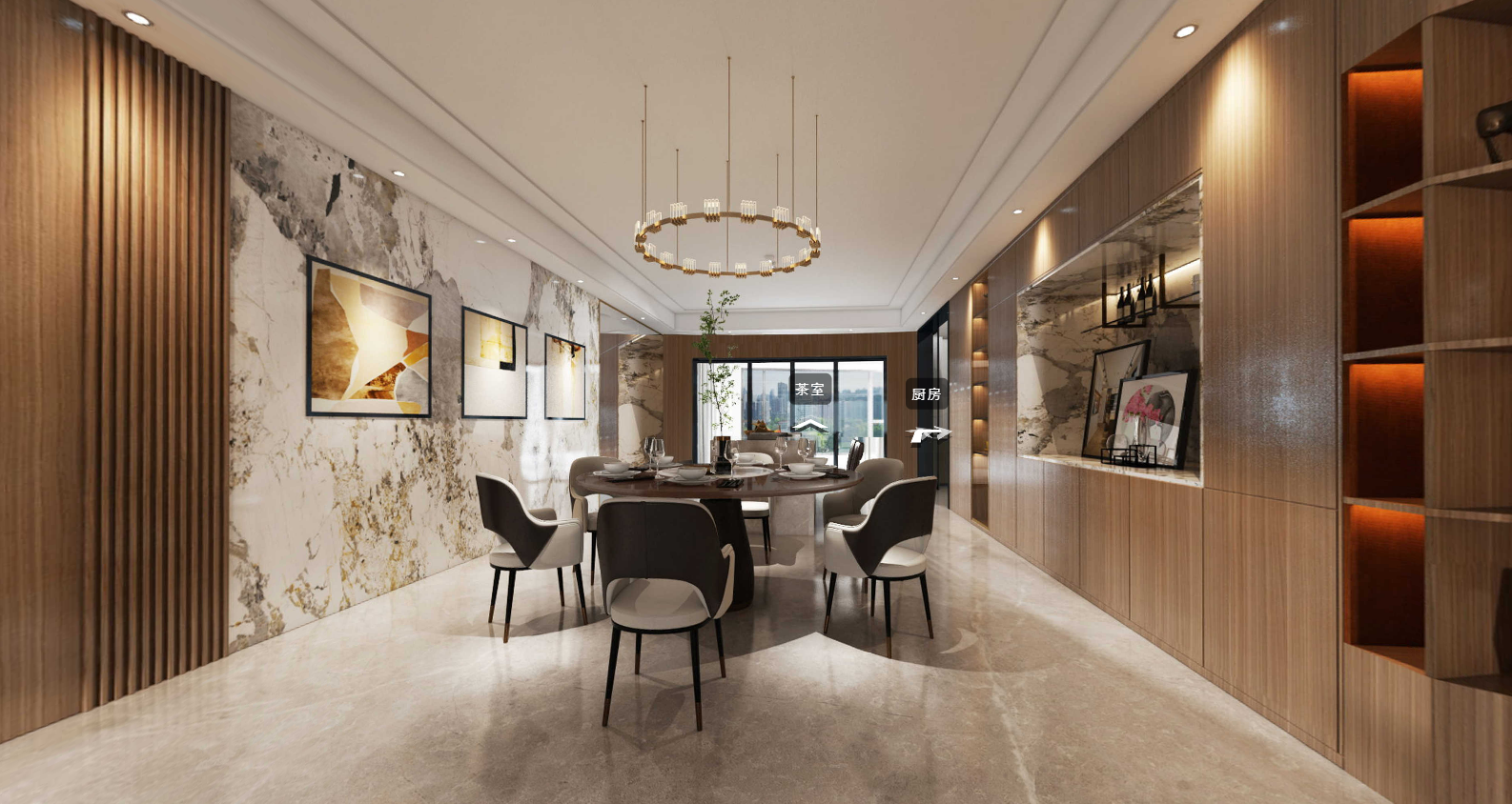 餐廳融合西廚加島臺功能,功能上合二為一,滿足長輩其樂融融的圍餐氛圍,又不失一家人的小資情調(diào)。