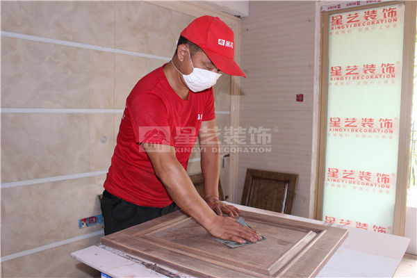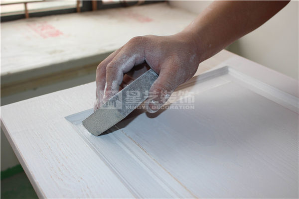 底漆干透后,用600#砂紙輕磨,以磨平附著在飾面板表面的灰塵顆粒即可。